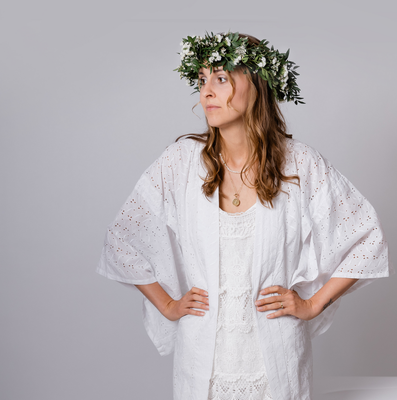 Kimono - white allover embroidery
